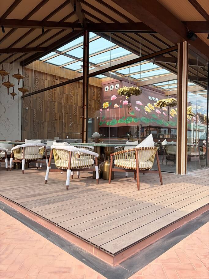 At Niloufer Café, Banjara Hills, Hyderabad, we crafted a seamless blend of heritage and modern durability – executing robust WPC outdoor decking built to withstand high-traffic charm.